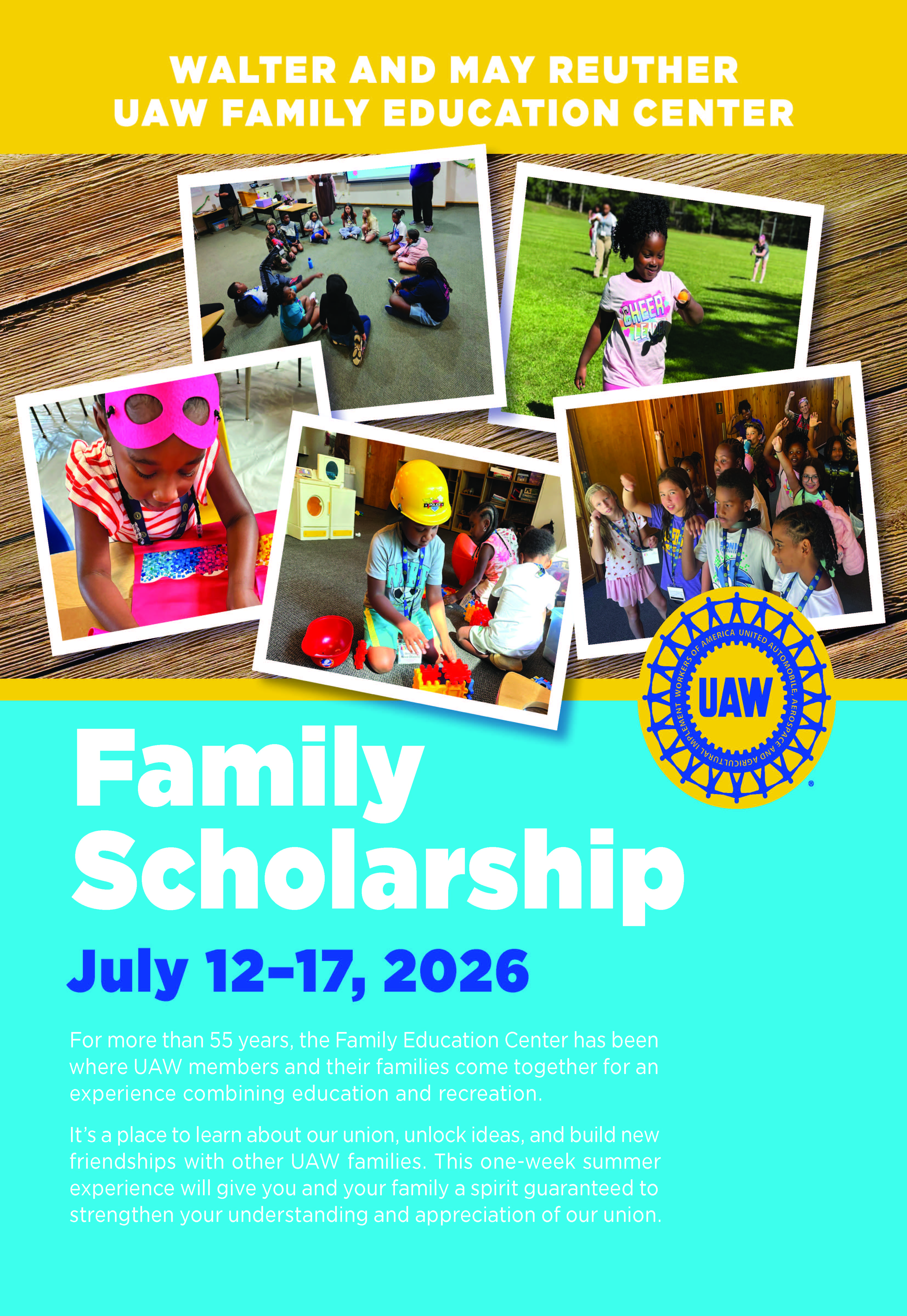 Since 1970, thousands of UAW members and their families have participated in the Walter and May Reuther UAW Family Education Center Scholarship Program – changing their lives and those of their loved ones forever!